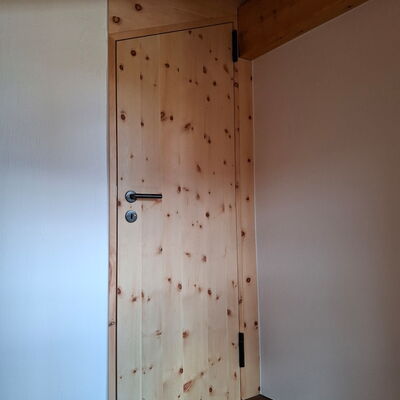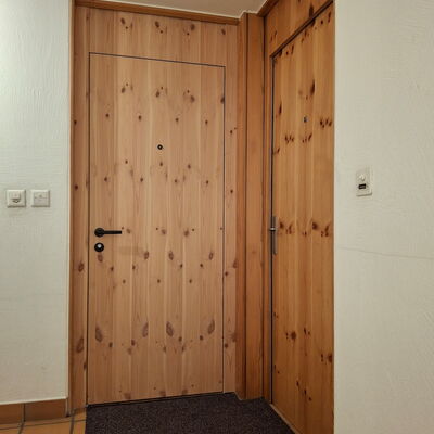 - Wohnungseingangstüre: Innenseite in Arve furniert und Aussenseite in Föhre furniert